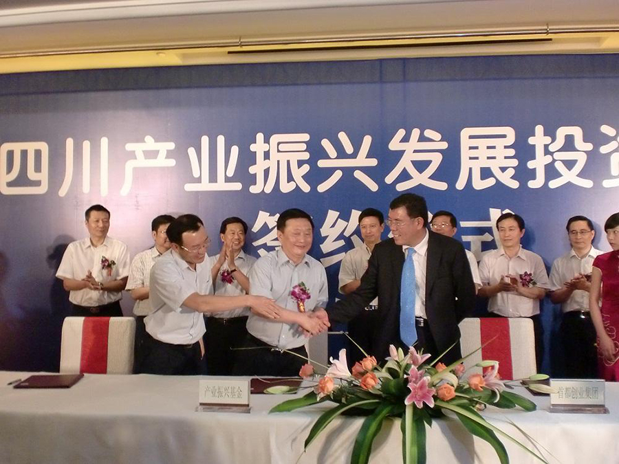 7月20日,首创集团总经理刘晓光在首创股份副总经理曹国宪、投资总监邱翼的陪同下,赴成都参加了四川产业振兴发展投资基金挂牌仪式,并代表首创集团与四川发展(控股)有限责任公司、四川产业振兴发展投资基金成功签约。四川省委常委省人大副主任王少雄、省人大副主任省国资委主任彭渝、省政府副省长李成云、及四大班子、各厅局、各市州的主管领导出席了挂牌及签约仪式。四川产业振兴发展投资基金是由四川发展(控股)有限责任公司、建银国际财富(天津)管理有限公司和国辰产业投资基金管理有限公司共同发起设立的一支股权投资基金,总规模300亿元,首期为100亿元。投资电子、节能、环保、新材料、能源、基础设施、文化产业,这是加快西部经济发展的一个新的投资力量。首创集团、首创股份公司将成为该基金的战略合作伙伴。合作协议的成功签署将大力推动首创股份在西南地区的水务环保领域的项目拓展。根据协议,三方本着合作共赢、优势互补的理念,充分发挥首创集团作为城市建设、运营和服务商的技术、资本、人才和管理优势,运用四川发展和四川产业基金的区域影响力、属地的政府支持以及项目储备资源,积极开拓水务、环保、垃圾、土地等领域的合作空间,适时成立合资合作平台,并将合资平台打造成为集投资、管理、运营于一体的、在西南区域有影响力的投资公司。签约结束后,刘晓光代表首创集团与四川产业基金董事长兼总经理许述生进行了亲切深入的交谈,对合作方案的实施作了具体指导和要求,双方将尽快组成项目班子进入工作状态。