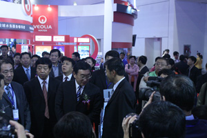 10月31日-11月3日,“2007中国水博览会”在苏州市国际博览中心隆重召开,来自世界各地13个国家和地区的120多家企业参加了展会。水博览会期间举办了中国水务高峰论坛。首创股份作为大会荣誉赞助和支持单位全程参加了本届大会活动。作为水博会招待酒会独家赞助商,潘文堂总经理代表首创股份在大会开幕式上致辞;郭鹏副总经理在大会主题论坛上发表了题为《抓住历史性机遇 促进水务企业的快速发展》的主题演讲,强调要抓住机遇,借助十七大的春风,做大做强首创股份。大会开幕前,水利部陈雷部长、江苏省黄莉新副省长等在潘文堂总经理的陪同下参观了首创股份的展台。首创股份战略企划部、证券事务部、办公室、投资二部等部门负责人及员工共计10多人参加了本次博览会及论坛。