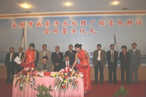 4月26日,首创股份与安庆市自来水公司在安庆举行 “安庆市城东污水处理厂经营权转让合同”签约仪式。首创股份总经理潘文堂与安庆市自来水公司法人、总经理游桂林代表双方在合同上签字,安庆市人大常委会副主任刘仲品、副市长李胜荣、市政协副主席光嘉元,北京首创集团董事郑热力等出席了签约仪式。安庆市城东污水处理厂规划处理能力为24万吨/日,该转让合同约定的污水处理规模为已建成的12万吨/日,特许经营期限为30年。