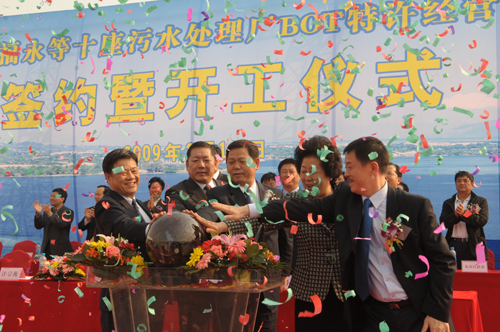 2月10日,深圳市十座污水处理厂BOT特许经营项目在宝安福永污水处理厂现场举行签约暨开工仪式。首创股份所属深圳首创水务有限责任公司、深圳市水务集团、南方水务有限公司与深圳市水务局分别签署了福永等十座污水处理BOT特许经营项目协议,签字仪式结束后,举行了隆重的开工典礼。首创集团董事郑热力、首创股份副总经理张恒杰、宗竹芝、投资总监邱翼、运营总监王鸿才等出席了仪式。深圳市委副书记、市长许宗衡,市委常委、副市长吕锐锋,市委秘书长、市政府秘书长等代表市委、市政府到场表示祝贺。深圳市水务局、规划局、建设局、国土局、监察局、环保局等相关职能部门的主要领导也参加了此次签约暨开工典礼。仪式的圆满结束标志着首创股份中标的深圳市福永、燕川、公明三座污水处理厂BOT特许经营项目正式进入建设阶段。三座污水处理厂建成运营后,污水处理能力将分别达到12.5万吨/日、15万吨/日、10万吨/日。