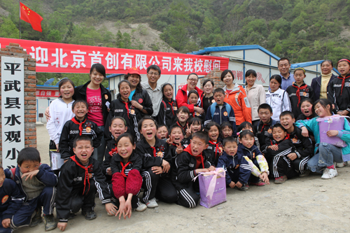 4月24日至26日,在首创集团团委书记、首创股份总经理潘文堂的带领下,公司团员代表一行七人代表公司爱心帮扶基金,赴四川省平武县水观乡水观小学看望了公司爱心基金资助的10名儿童,并给他们带去了公司员工捐赠的书籍及文体用品。