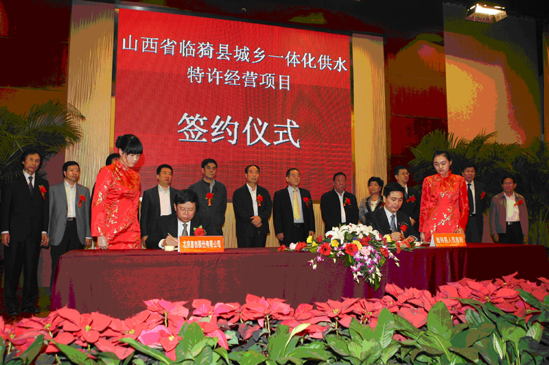 10月19日,山西省临猗县城乡一体化供水特许经营项目签约仪式在运城市金鑫大酒店隆重举行。首创股份董事总经理俞昌建,董事副总经理张恒杰,副总经理郭鹏等领导以及运城市人大主任张建合、副市长武宏文,临猗县委书记胡宝等政府领导出席了签约仪式,临猗县人民政府史凯县长与首创股份俞昌建总经理代表双方共同签署了《临猗县城乡一体化供水项目特许经营协议》。临猗城乡一体化供水项目规模为6.5万吨/日。项目的成功签约将进一步带动首创股份与山西省其它城市水务项目的合作。签约仪式后,与会领导和嘉宾为工程开工培土奠基。