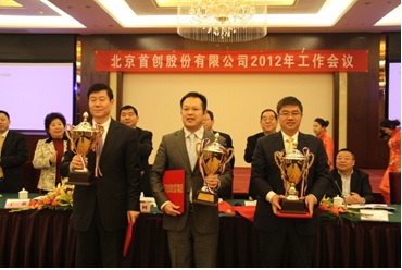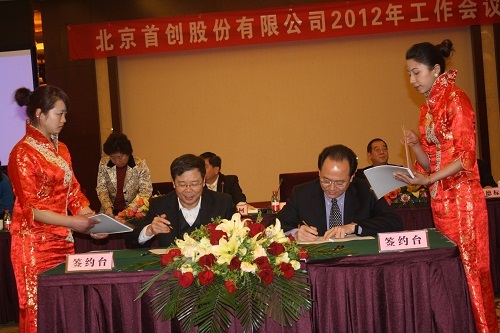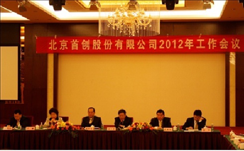 2012年1月16至17日,首创股份召开了2012年工作会议。首创股份总部中层以上各级领导、首创股份所属二级公司董事长、副董事长、总经理、副总经理及财务总监等共计116人参加了此次会议。16日上午,首创股份总经理俞昌建首先在大会做了题为“加快发展、创新管理、打造队伍,为全面完成公司各项工作任务而努力奋斗”的年度工作报告,俞总在报告中全面总结了公司2011年主要工作完成情况及存在的问题,深入分析了2012年公司面临的经济形势和经营环境,全面部署了公司2012年的经营目标和工作要求。随后,由张恒杰副总经理向大会传达了首创集团2012年度工作会议精神。16日下午,大会分供水、污水、非水三个小组,分别就“面对2012年经济形势,围绕公司年度工作报告,如何更好的完成今年工作任务”和“2012年管理结构优化,结合本企业实际情况,如何打造企业的核心竞争力和加强精细化管理”两项议题展开了讨论。16日晚上,在精心布置的大会会场举行了首创股份2012年迎春联欢会。来自马鞍山、淮南、呼和浩特、临沂等十余家下属公司的演员们为全体参会人员奉献了小品、快板、黄梅戏、歌伴舞等精彩的节目,抽奖环节和游戏环节更使现场的欢乐气氛达到高潮。17日上午,首先由各小组召集人向大会汇报了分组讨论意见;随后,对“2011年行动学习”的最佳和优秀课题单位进行颁奖;之后,由审计法律部总经理叶劲在会上宣贯了关于《执行企业内部控制基本规范》及试行内控手册的通知;最后徐州首创、临沂首创、淮南首创、马鞍山首创分别就供水经营成本控制、污水处理服务费收取、降低产销差等问题交流了各自在行动学习活动中的先进管理经验。17日下午,俞昌建总经理与公司总部各部室分别签署了2012年度目标责任书,与相关部室签署了2012年度安全维稳责任书,张恒杰副总经理做了精彩的总结发言,会议在热烈的掌声中圆满落幕。18日上午,参会代表对马鞍山首创水务公司的新客服中心、调度室、新建滤池等处进行了参观考察。