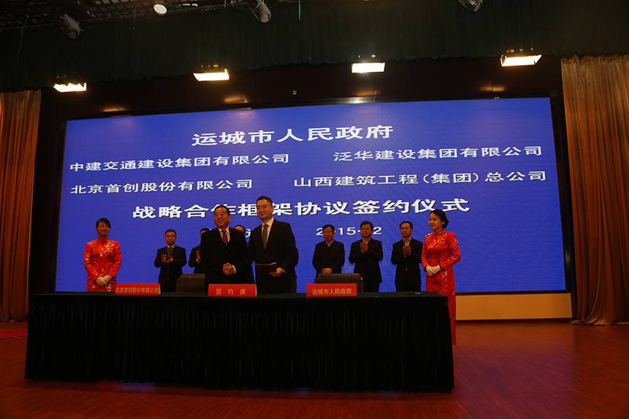 2015年12月17日,首创股份在山西省运城市与运城市人民政府签订了运城市城区水系整治与综合开发项目的《战略合作框架协议》,双方拟在运城市中心城区水系治理及综合开发项目上展开合作,并计划在未来1-5年内投资约40亿元,完成上述项目的投资建设。公司党委书记、副总经理张恒杰,运城市市委书记王宇燕,市长王清宪出席签约仪式。