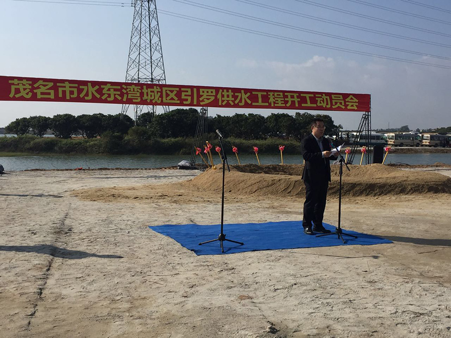 2015年12月13日,广东省茂名市水东湾畔的占鳌水厂工地彩旗飘扬、锣鼓喧天,各类大型施工机械整齐划一、众多工程建设人员整装以待。上午10点30分,水东湾城区引罗供水工程开工奠基仪式隆重举行。公司总经理刘永政,茂名市市委常委兼电白区委书记刘小涛、市委副书记兼市长李红军、市政府秘书长林振光以及市财政局局长王伯昌、电白区区长华翠等领导出席了开工奠基仪式。