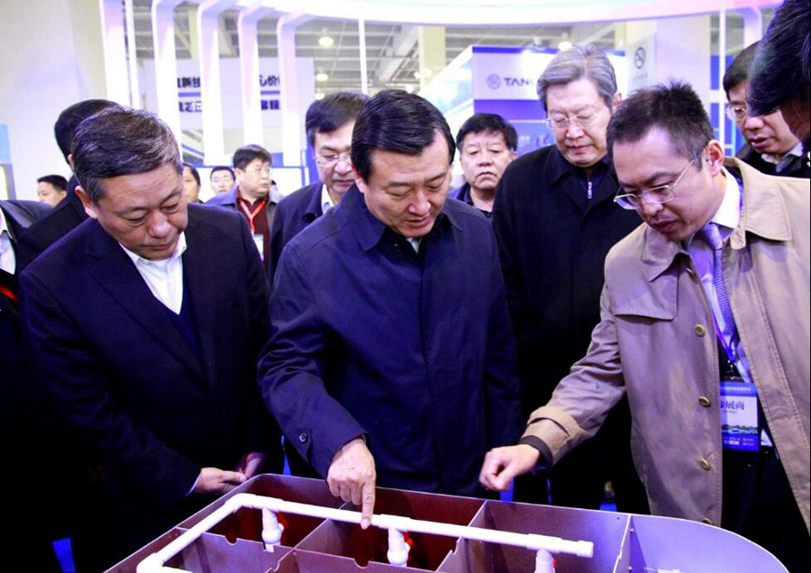 首创股份作为城市建设技术与产品展的参展商,经过精心准备,凭借自身在水务和环保产业领域的资金、技术、人才优势,成为城博会上的一大亮点。住房城乡建设部副部长倪虹,山东省政府特邀咨询、省政府党组成员张建国,临沂市委副书记、市长张术平等相关领导亲临首创股份展厅,与首创股份副总经理江瀚进行了亲切交流。在城博会上,首创股份主要展示了旗下首创清源公司的SSLE型污水处理设备、好氧厌氧反复耦合(rCAA)污泥减量化技术和首创绿源公司的活性砂过滤器,其特点是技术自主专利、投资省、运行效率高、易操作管理,能耗低等。
